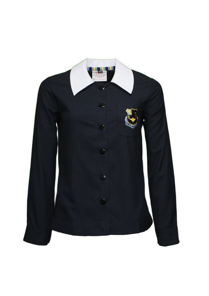 Queen Margaret Senior LS Blouse Navy/White